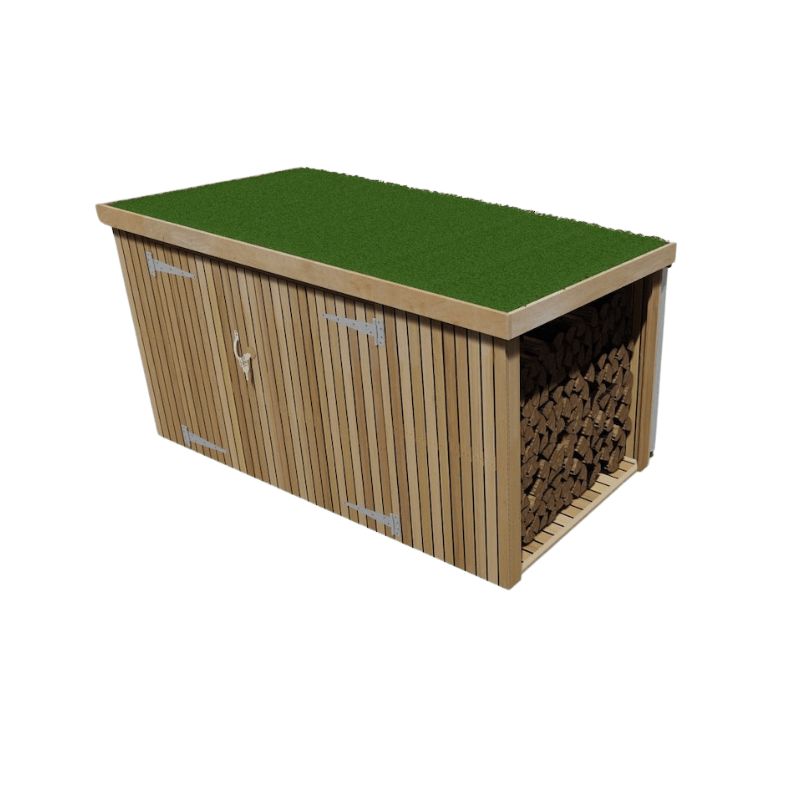 The roof and walls are extended out by an extra 400mm, enough to take most sizes of logs. The floor of the log store is built in treated slats to allow good air flow under the logs.
