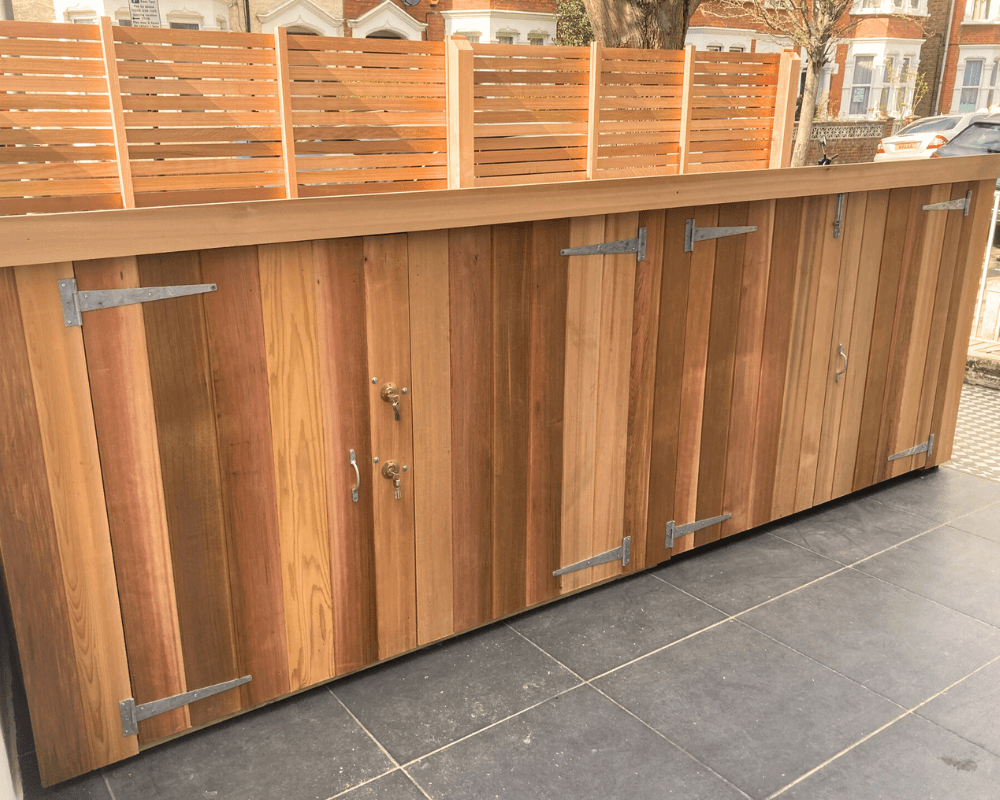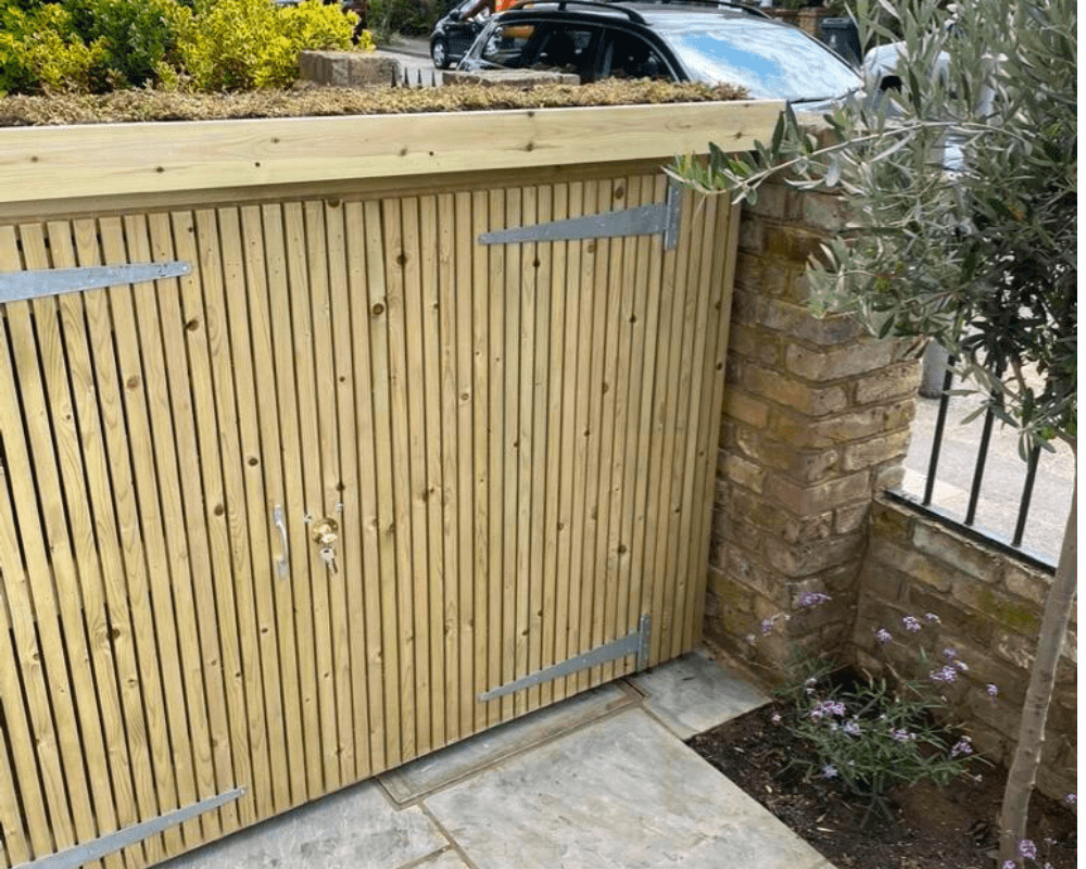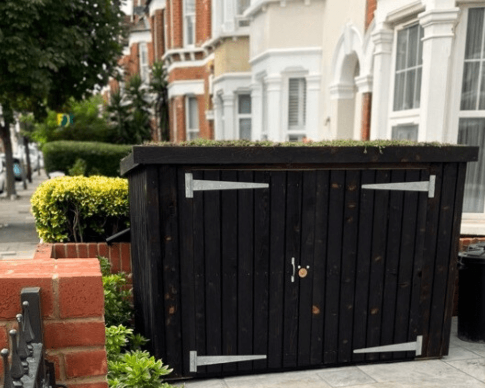 The design of these storage units is based on the average 240L household wheelie bin but can be used for bins of alternate sizes.