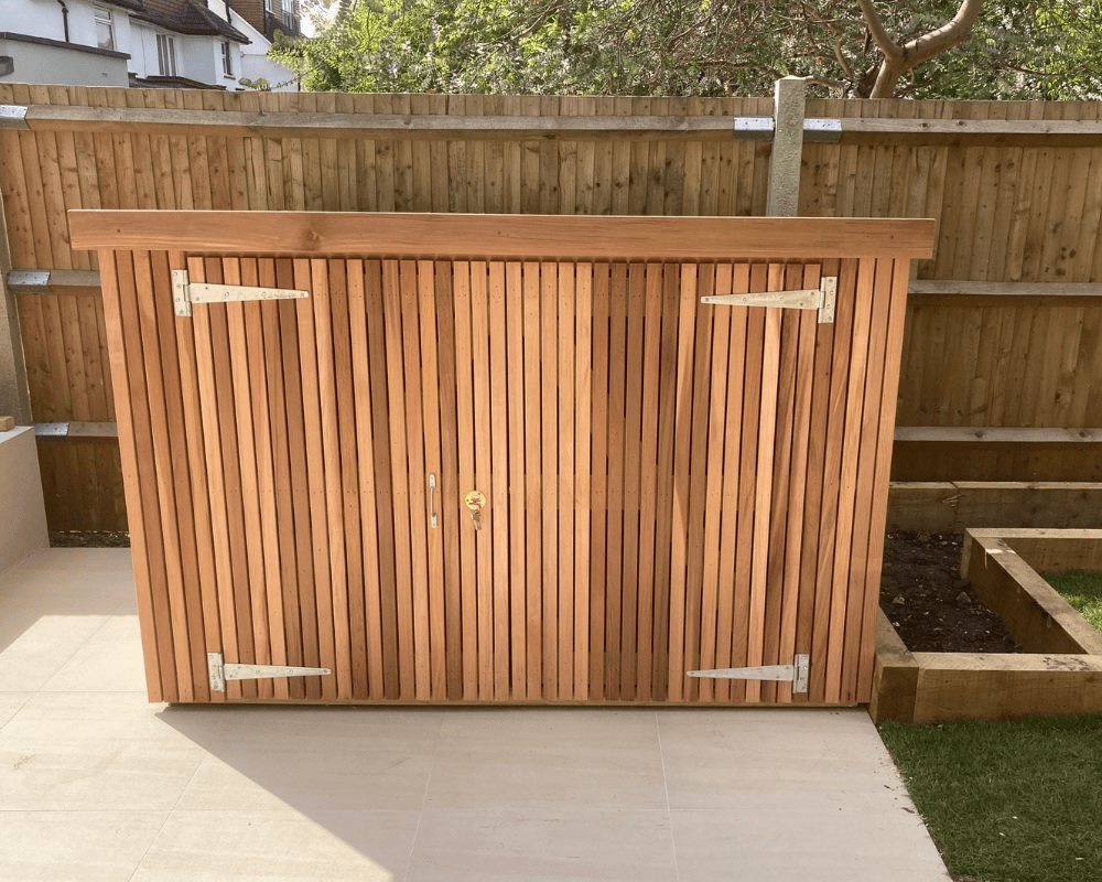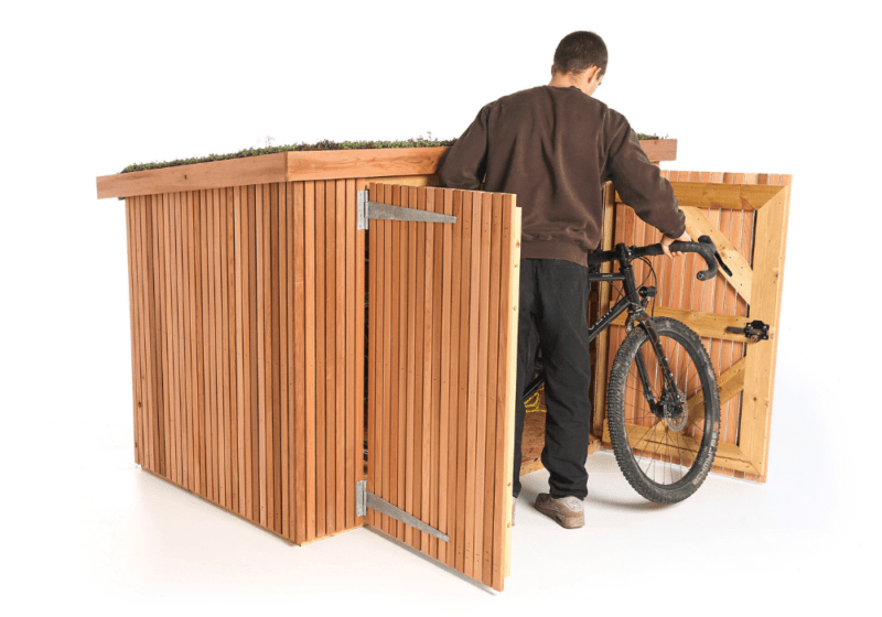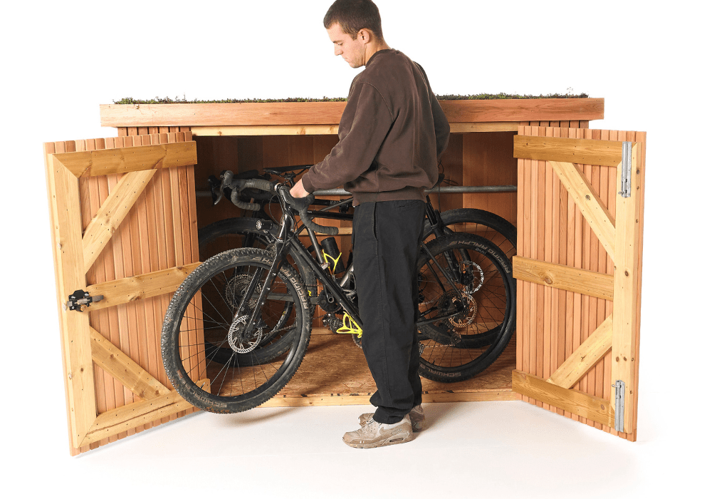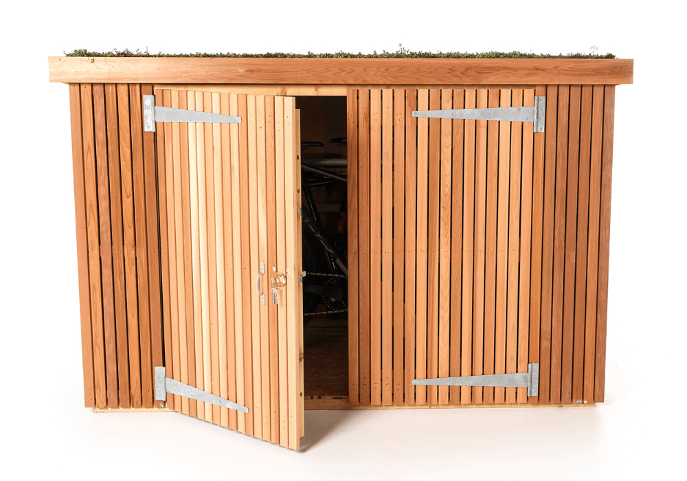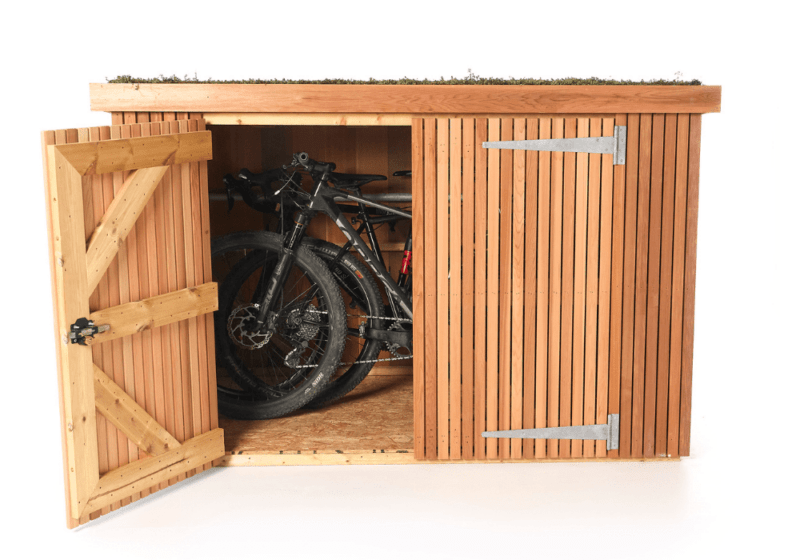 Our Wood Shed range can be adapted by simply adding a lock to cart after configuring. The M or L sizes (108cm wide and 144cm wide) are like mini Classic bike sheds. Instead of logs just add small bikes!
