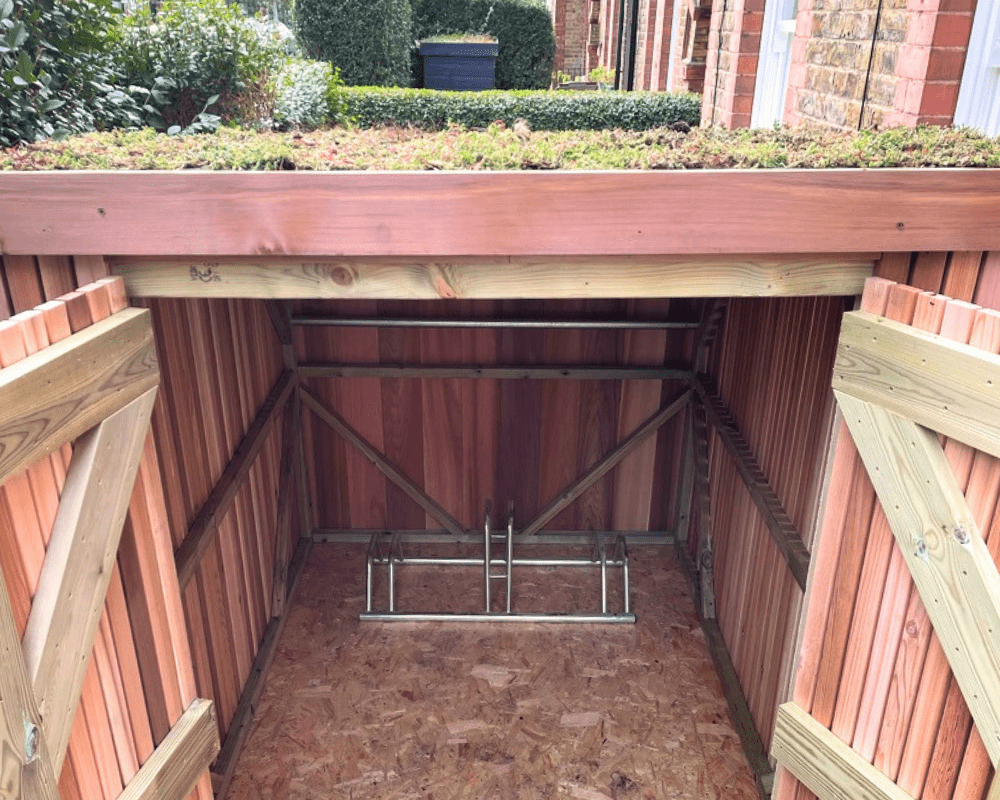 If you require non-standard or bespoke sizes or finishes, use our bespoke enquiry form or email us at info@brightonbikesheds.co.uk with an image or two of the space. Please also include a description of your storage needs, dimensions (WxDxH), and your postcode. If you send a photo or a quick sketch of the layout, that really helps.
