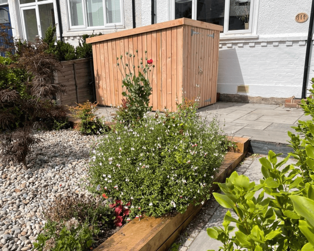 Roll your bicycle into an easy-access bike shed built with a deeper plan and convenient wheel rack. The Slot-In has a higher roof and a larger footprint, making it suitable for back gardens or larger front gardens.
