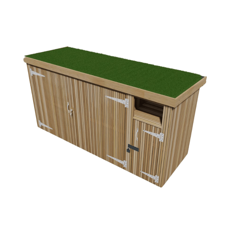 We’ve designed our wheelie bin sheds to have extra space above the bins, letting you easily drop rubbish into the bins without needing to take the bin out.