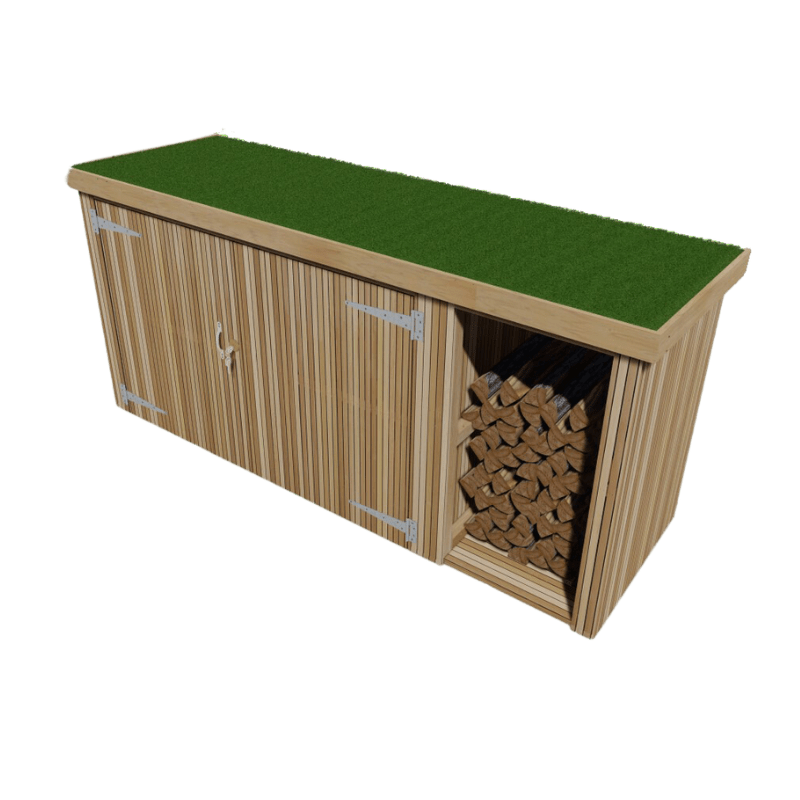 Our wooden wheelie bin storage sheds are available with two unique add-ons; log storage and parcel storage.