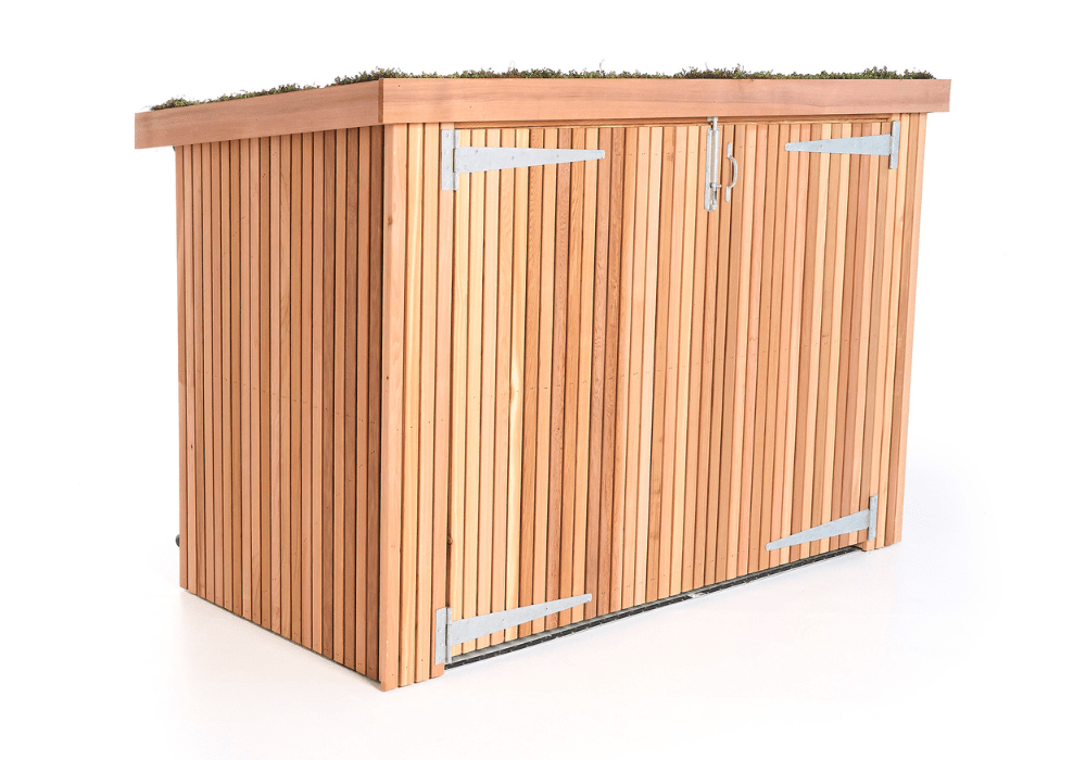 Our wooden wheelie bin storage sheds are built to last, with roofs strong enough to walk on! The cladding is made of solid 20mm timber, which develops a beautifully subtle silvery-grey colour as it ages.