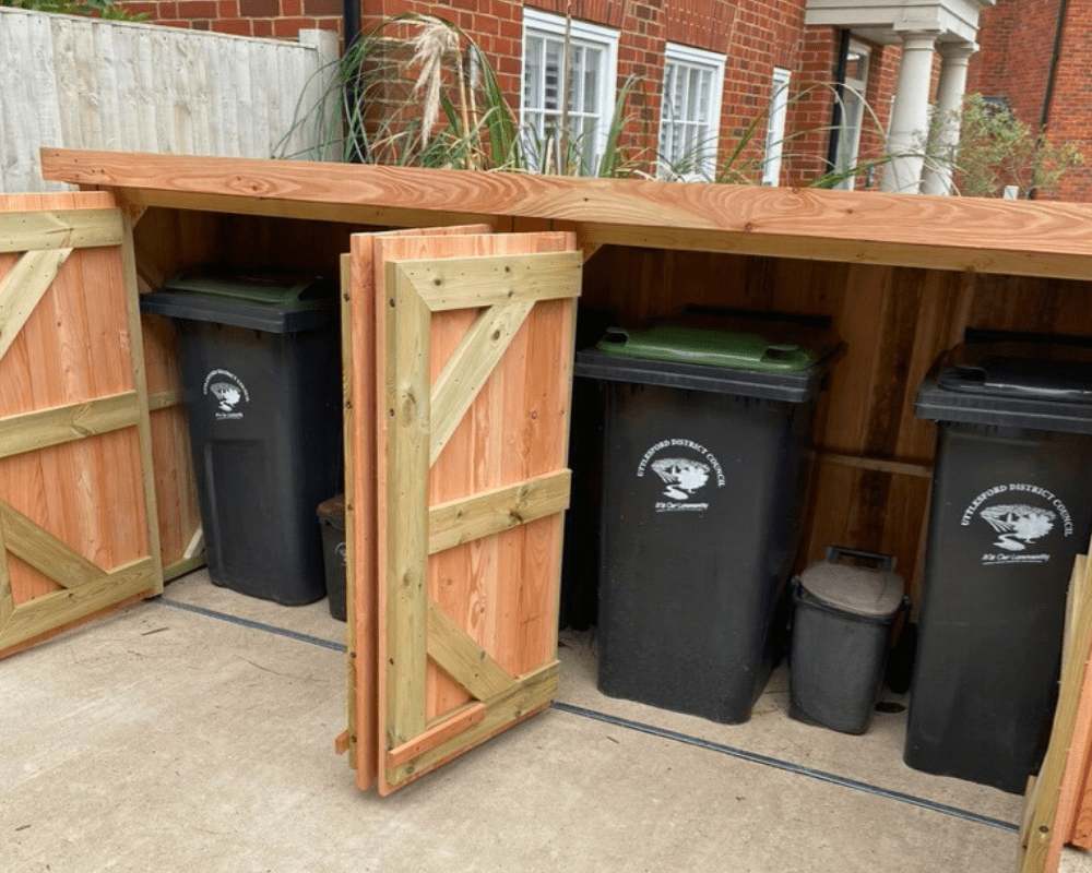 We’ve designed our wheelie bin sheds to have extra space above the bins, letting you easily drop rubbish into the bins without needing to take the bin out.