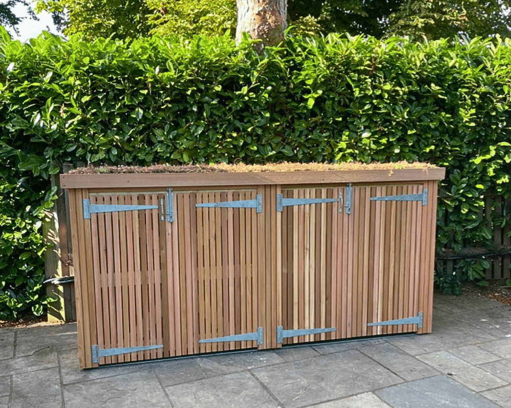 Our wooden wheelie bin storage sheds are built to last, with roofs strong enough to walk on! The cladding is made of solid 20mm timber, which develops a beautifully subtle silvery-grey colour as it ages.