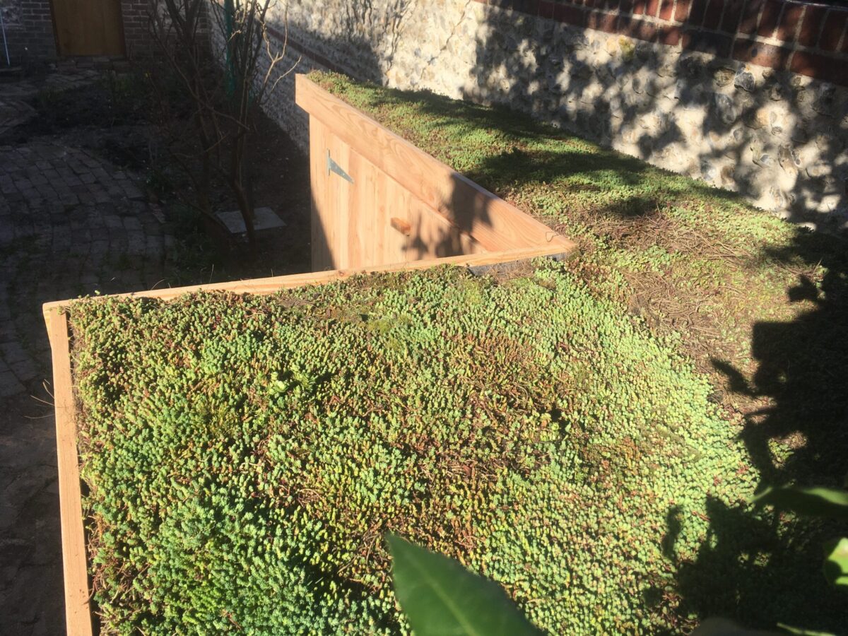 We think sedum is a better solution for our sheds as it only grows to a maximum of 150-180mm in the summer, whereas wildflower can grow much taller (up to 450-500mm in summer) and we think this is disproportionate to the scale of the shed. Also, wildflower roofs tend to brown off in summer after flowering, and never fully recover until spring. Sedum flowers in summer and new growth follows and it looks green all year around. It is much easier to maintain than wildflower.