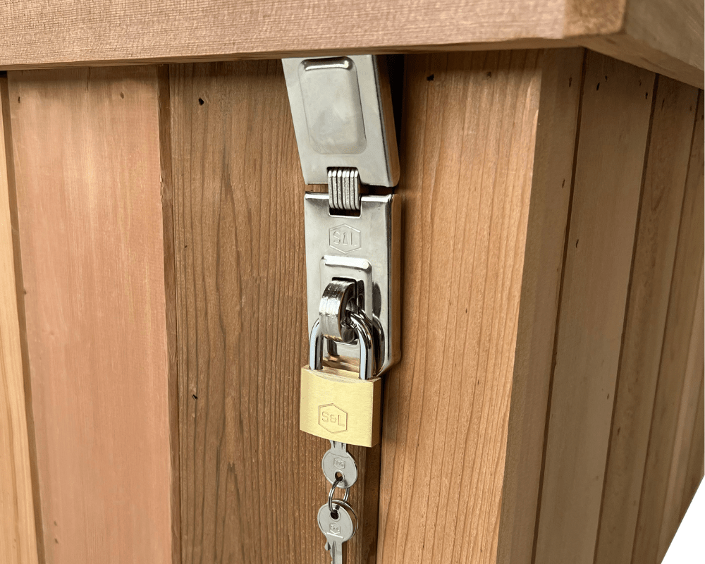 The basic version of the bench does not come with locks; however, it is waterproof, providing highly protected storage for everything kept inside. You can upgrade the bench to include paired locks for theft protection.