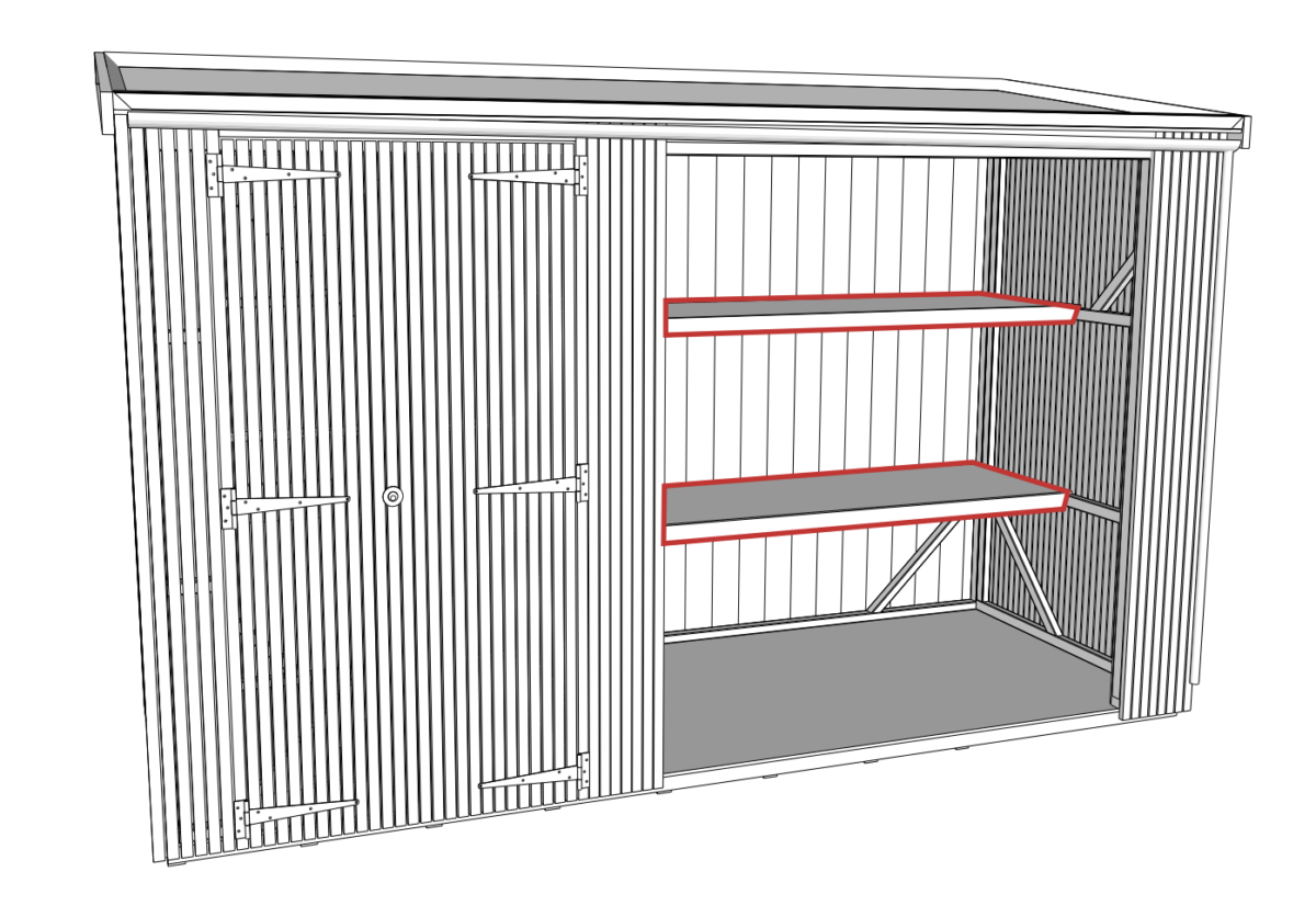 Shelves â If youâd like a little bit of extra flexible storage in your shed, we now offer a full range of shelving options. Add a small shelf for bike helmets in your bike shed.